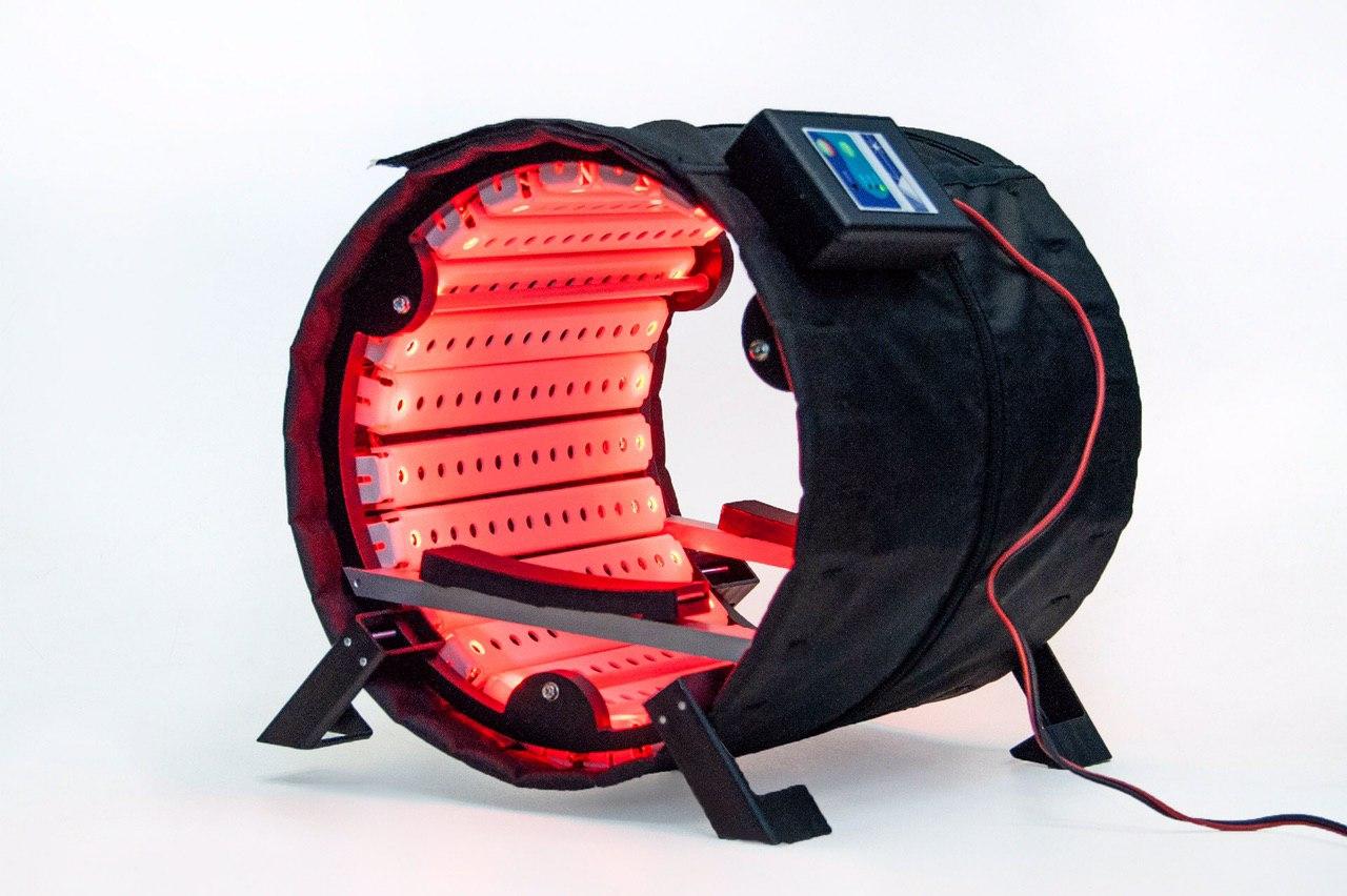 Обновленная модель оборудована таймером, который контролирует время сеанса. По итогам консультаций с медицинскими специалистами в комплект также добавлен каркас, который поставляется дополнительно – это позволяет использовать прибор как в гибком, так и в жестком варианте. Благодаря каркасу пациент может удобно разместить поврежденную конечность в зоне облучения, не прикасаясь при этом к самому устройству.