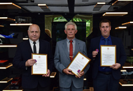 За содействие органам внутренних дел Российской Федерации в их работе по охране общественного порядка и многолетнюю добросовестную работу наград «За отличие в охране общественного правопорядка» удостоились: начальник отряда Санкт-Петербургского филиала АО «РТ-Охрана» Масякин Сергей Иванович, старшина отряда Мартынов Евгений Владимирович и охранник отряда Орлов Вениамин Геннадьевич.