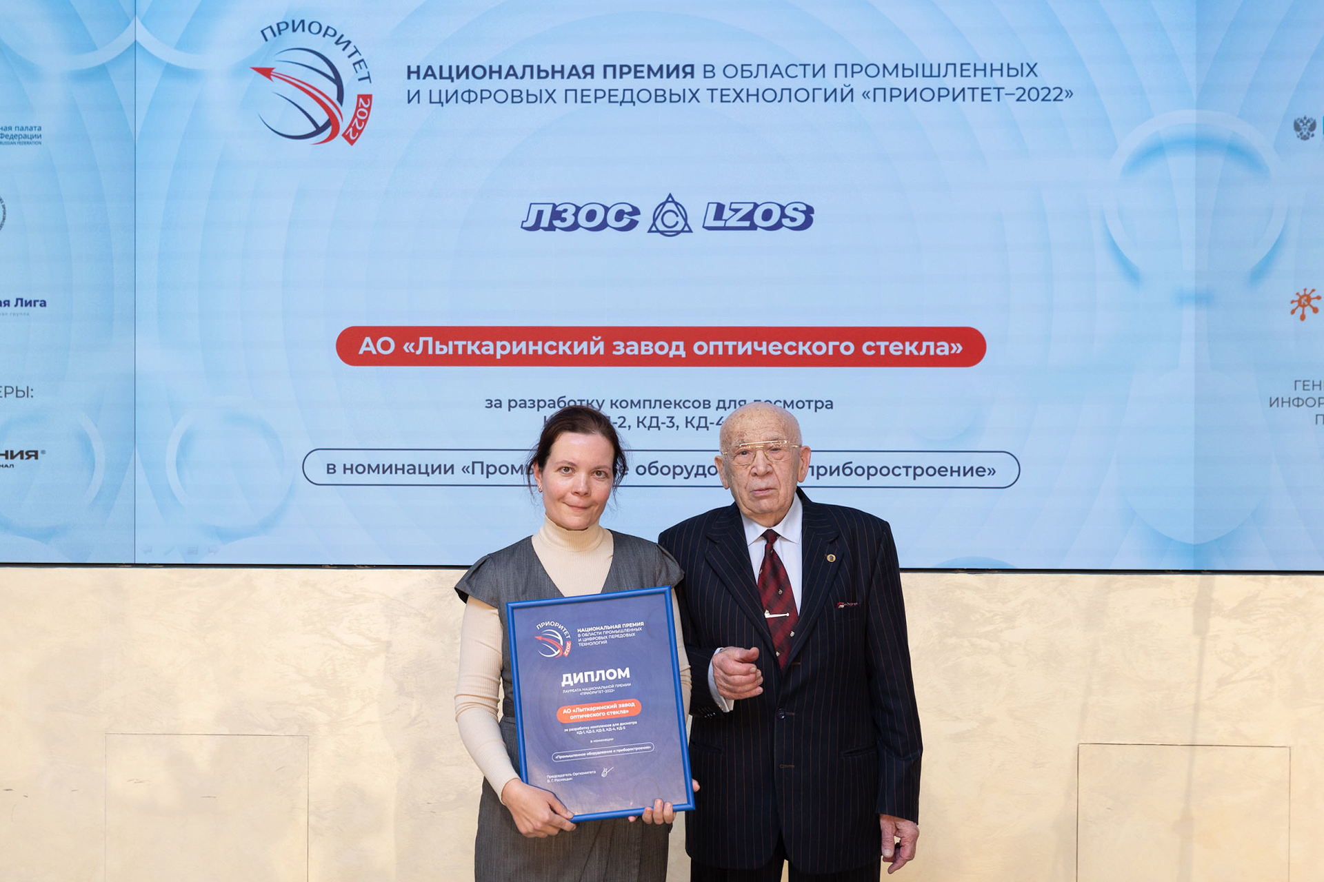 В Общественной палате РФ национальная премия в области промышленных и цифровых передовых технологий «Приоритет-2022» присуждена Лыткаринскому заводу оптического стекла (ЛЗОС). Награда отмечает вклад производителя в развитие направления создания и выпуска промышленного оборудования для сферы безопасности.