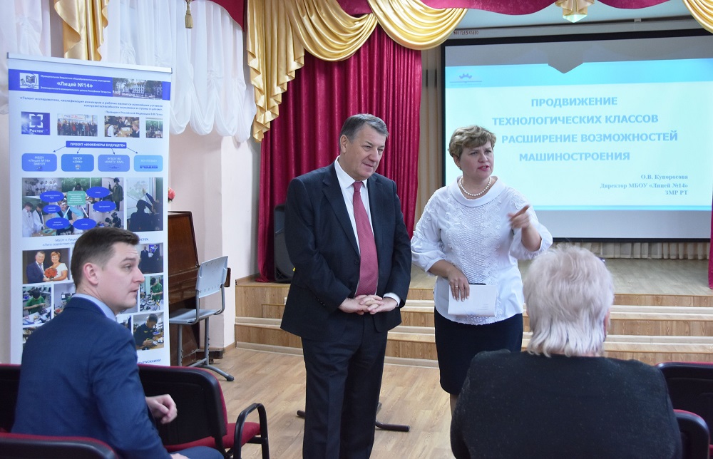 Обсуждение ключевых вопросов состоялось в ходе рабочей встречи генерального директора АО «ПОЗиС», председателя Татарстанского регионального отделения Союза машиностроителей России, профессора Радика Хасанова с педагогическим коллективом лицея. Особое внимание было уделено работе по развитию класса технологического (инженерного) профиля.