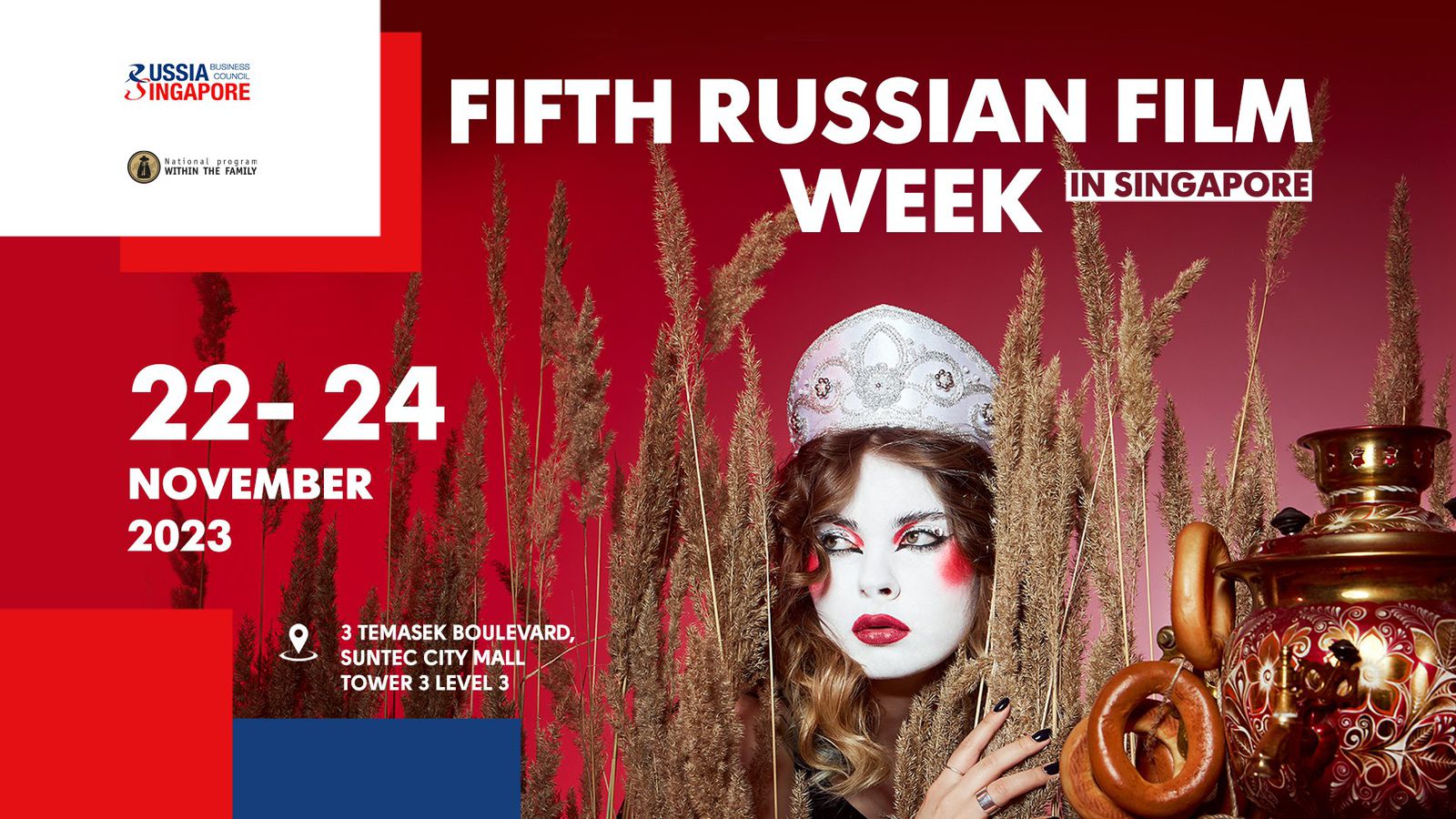 Ежегодно Российско-Сингапурский Деловой Совет (РСДС) и Общенациональная программа «В кругу семьи» проводят Неделю российского кино. В этом году мероприятие пройдет в период с 22 по 24 ноября в крупнейшем кинотеатре Сингапура, где проходят мировые и сингапурские кинопремьеры. Церемония открытия пятой Недели российского кино состоится в отеле Four Seasons.