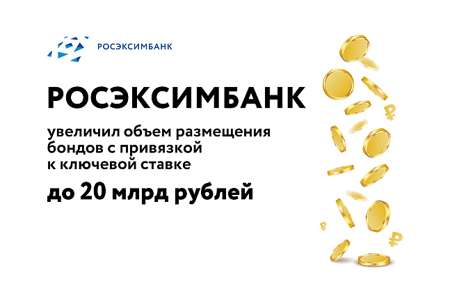 - ROSEXIMBANK meningkatkan volume penempatan obligasi yang terkait dengan suku bunga utama menjadi 20 miliar rubel
