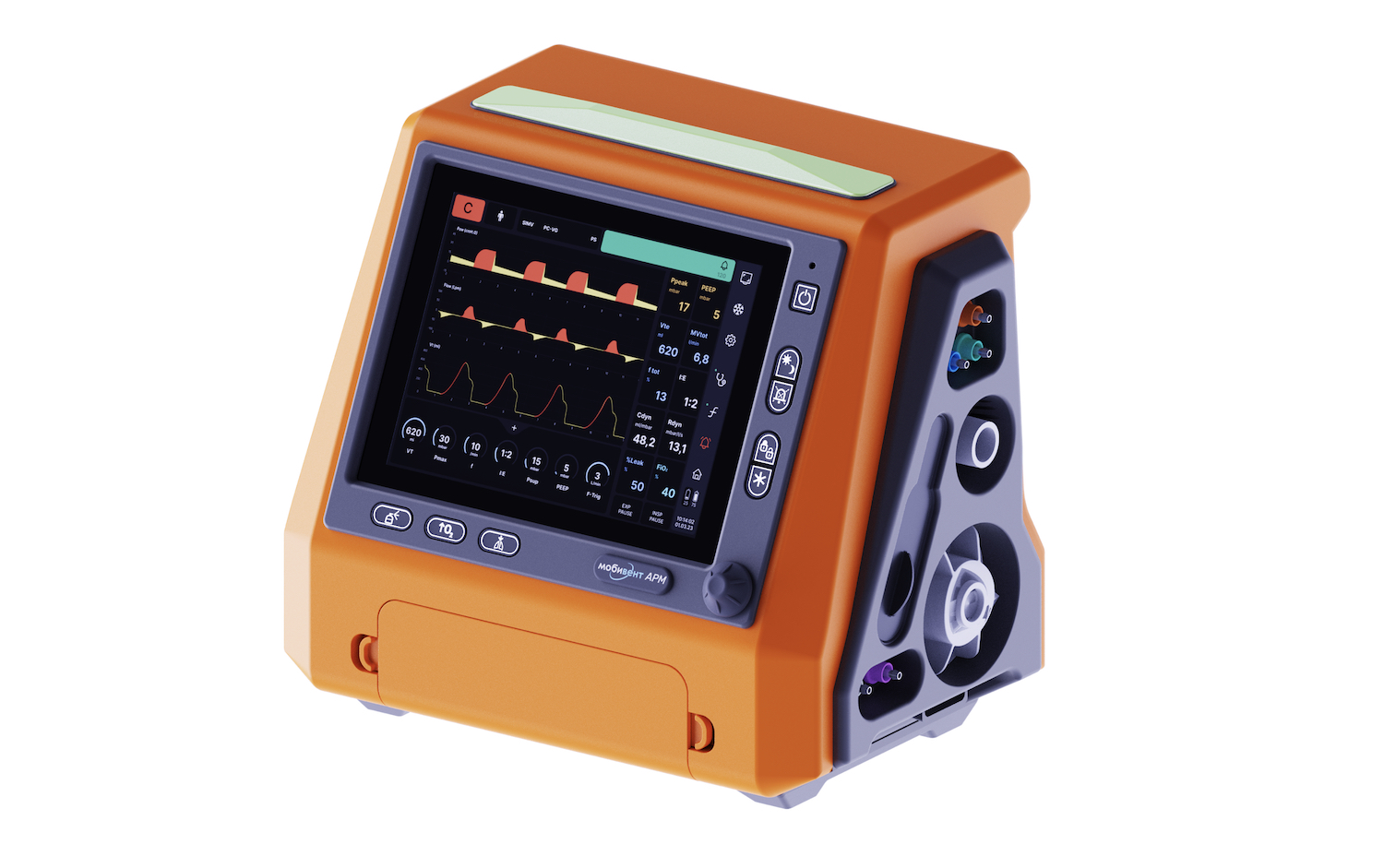 - Concern Radioelectronic Technologies (KRET) akan menunjukkan untuk pertama kalinya di Innoprom ventilator Mobivent ARM untuk mengangkut pasien