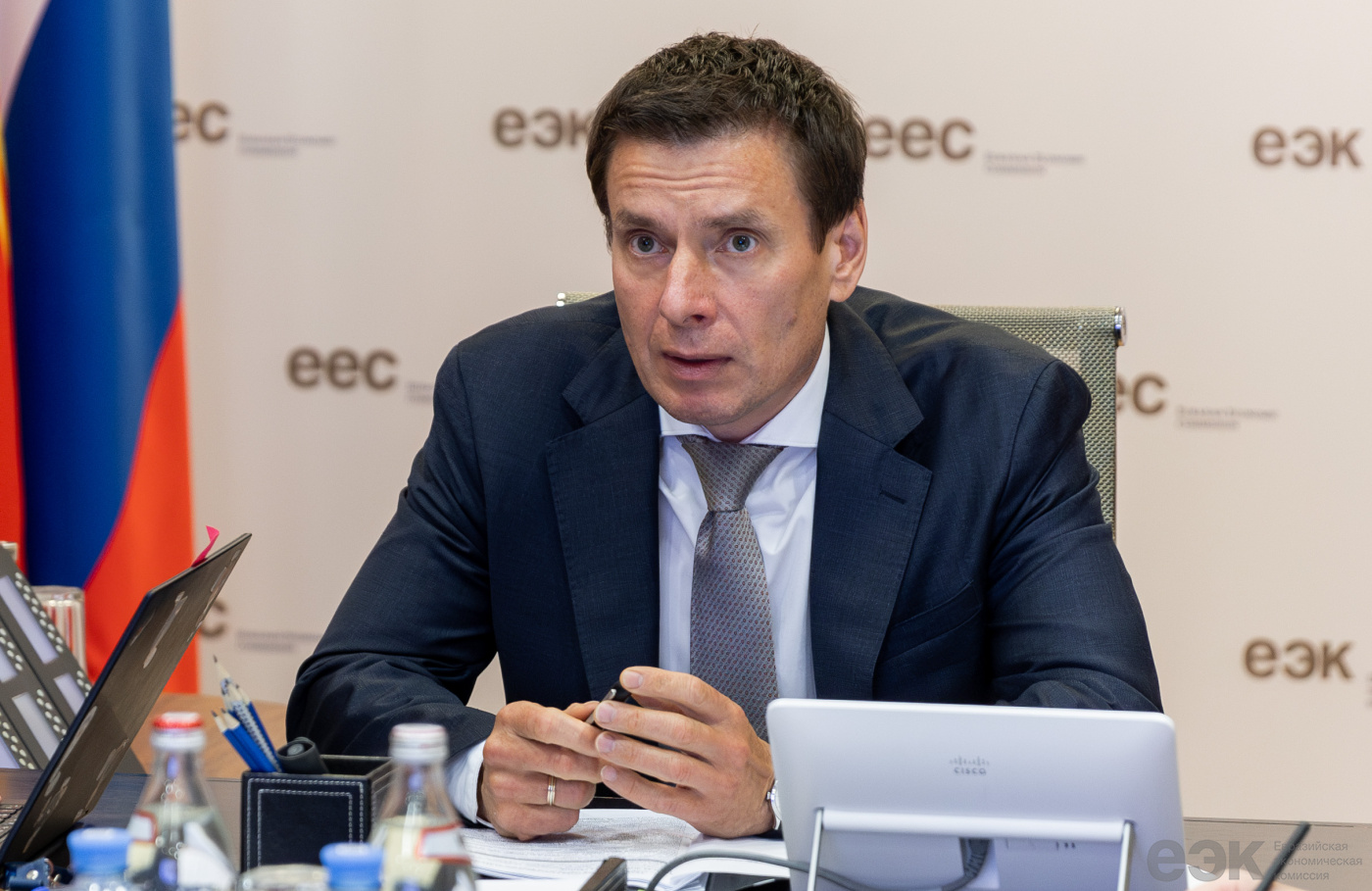 Andrey Slepnev berdiskusi dengan Menteri Negara Perdagangan Luar Negeri UEA Thani bin Ahmed Al Zayoudi mengenai penyelesaian negosiasi perjanjian kemitraan ekonomi