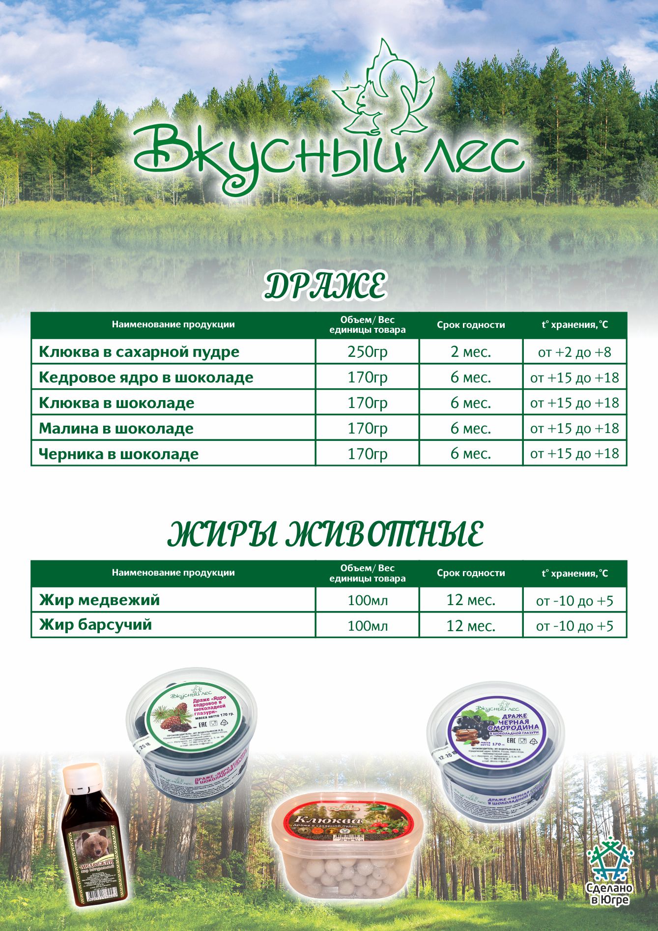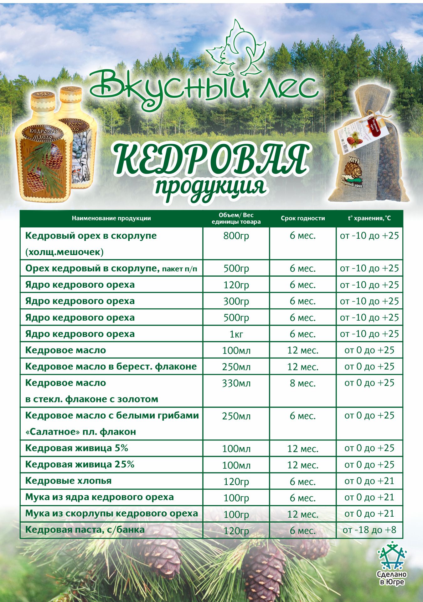 Pengumpulan tumbuhan liar dan ekstraksi hewan dan burung liar bersifat musiman dan karena periode perburuan yang mapan dan periode pematangan tumbuhan. Selama pengadaan bahan baku, jumlah total karyawan yang terlibat sekitar 200 orang, semuanya terlibat langsung dalam pengumpulan buah-buahan dan buah beri dari tanaman dan ekstraksi hewan, biasanya penduduk lokal di wilayah di mana panen terbesar dilokalisasi. Saat ini perusahaan memproduksi lebih dari 40 jenis produk jadi, produk berdasarkan kacang pinus.