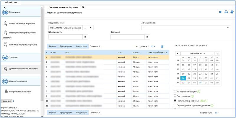 - стол госпитализации;