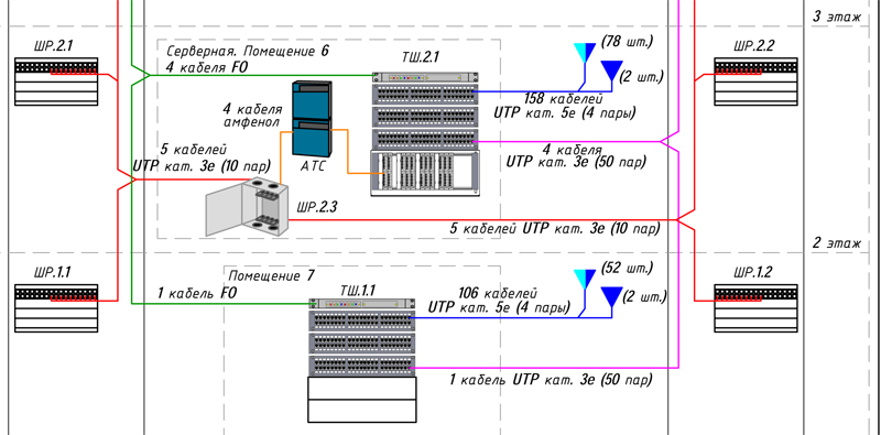расположение микросотовых баз, оконечных телефонных розеток и другой фурнитуры;