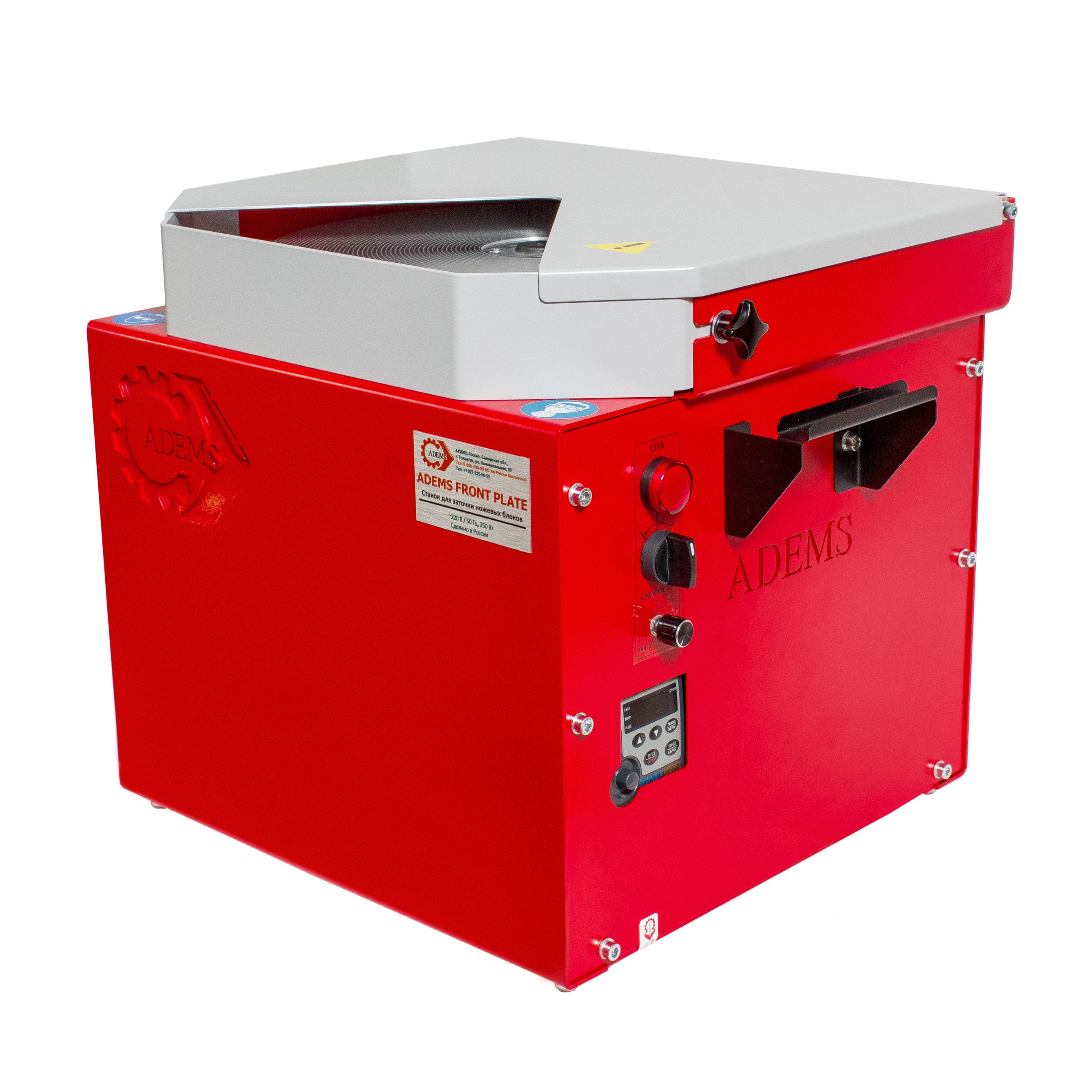 The ADEMS Front Plate Inverter machine is fully completed with all necessary additional and consumables. Getting the machine you get a ready-made solution for a successful sharpening business.