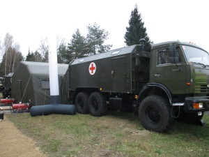 Также передвижной мобильный госпиталь стоит на вооружении вооружении МЧС и используется при ликвидации последствий в зонах техногенных и природных катастроф. В зонах силовых конфликтов использование военного мобильного госпиталя позволяет оказать качественную медицинскую помощь и сохранить боеспособность войск.