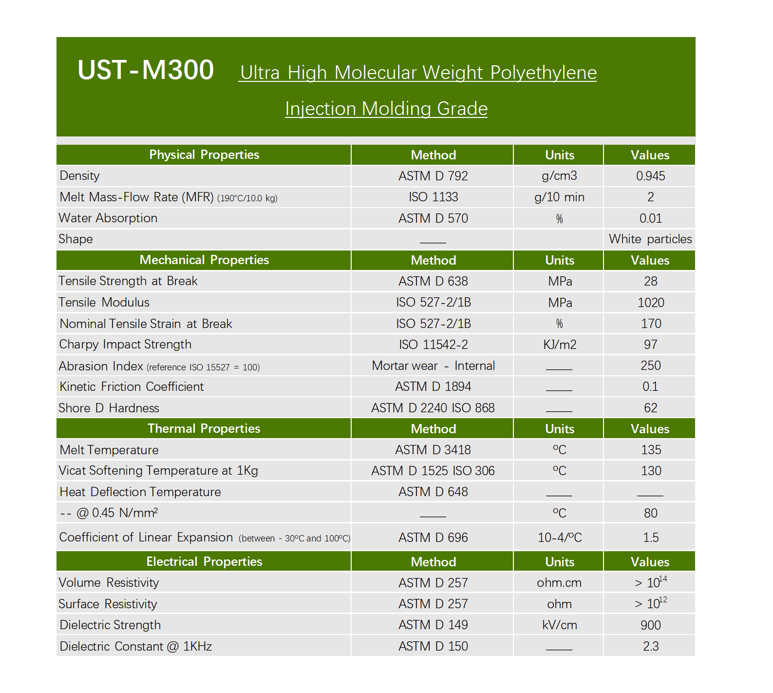 The excellent properties of UST-M300 are as follows: