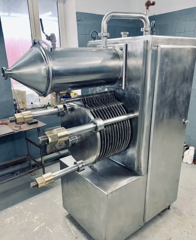 Vertical closed-type cheese making machine with a bottom shape "2O"